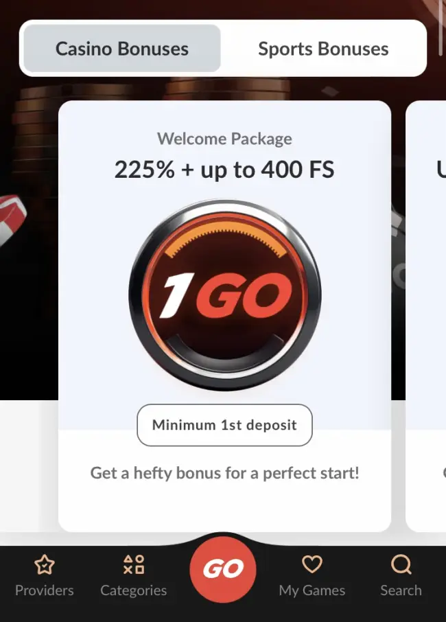 1Go Casino Boni: Willkommensbonus, Freispiele und Bonusbedingungen